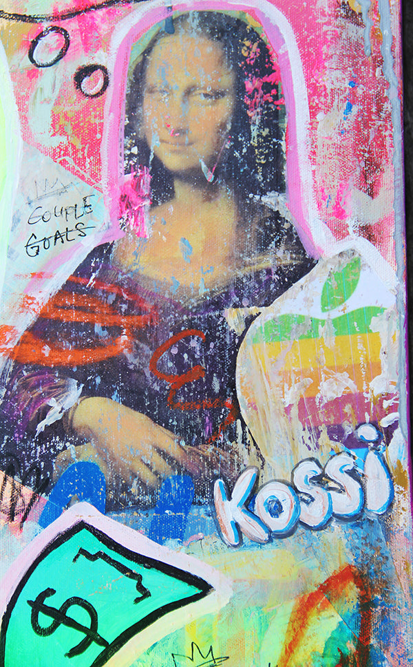 Originalkunstwerk von Kristin Kossi 2024. Acryl, Collage, Sprühfarbe auf Leinwand. Signiert und datiert, das Kunstwerk wird fertig zum Aufhängen geliefert.