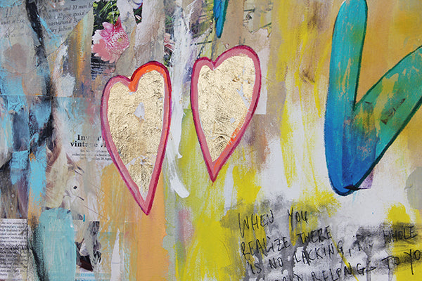 Originalkunstwerk von Kristin Kossi 2023. Acryl, Collage, Blattgold, Sprühfarbe auf Leinwand. Mattes UV-Finish, vorne signiert und hinten datiert, fertig zum Aufhängen.