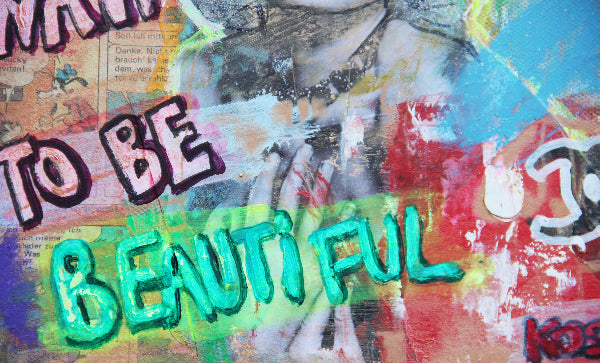Original artwork by Kristin Kossi 2022. Acrylic, collage, spray paint, epoxy on canvas. Signed and dated.
