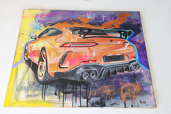 Rendered in bold, vibrant colors and dynamic brush strokes, this pop art interpretation captures the electrifying energy of the powerhouse hybrid car. From its striking exhaust to its sculpted curves, every detail is accentuated. With this artwork on your wall, you can experience the thrill of pure, unadulterated power.