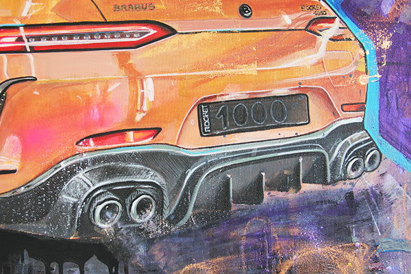 Inspired by the newly released Mercedes-AMG GT BRABUS Rocket 1000 sports car. This stunning piece celebrates the fusion of cutting-edge technology and artistic flair, encapsulating the essence of speed, power, and style.