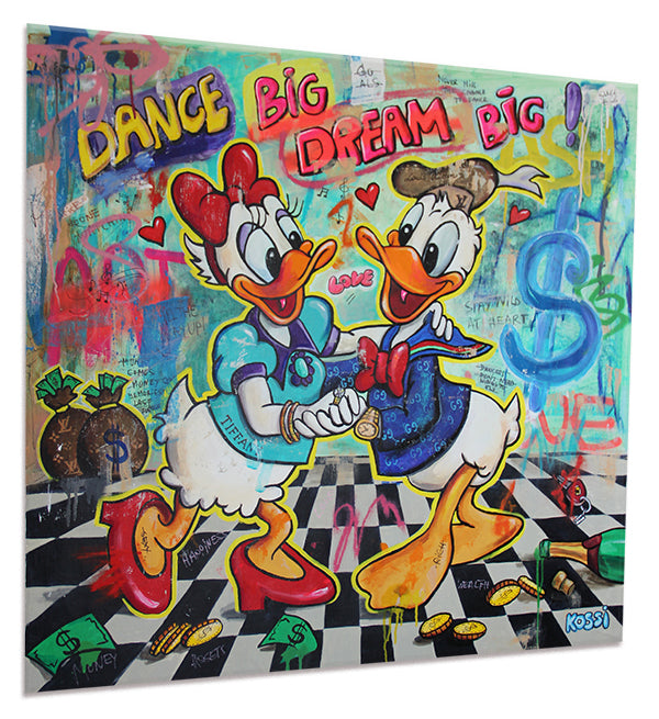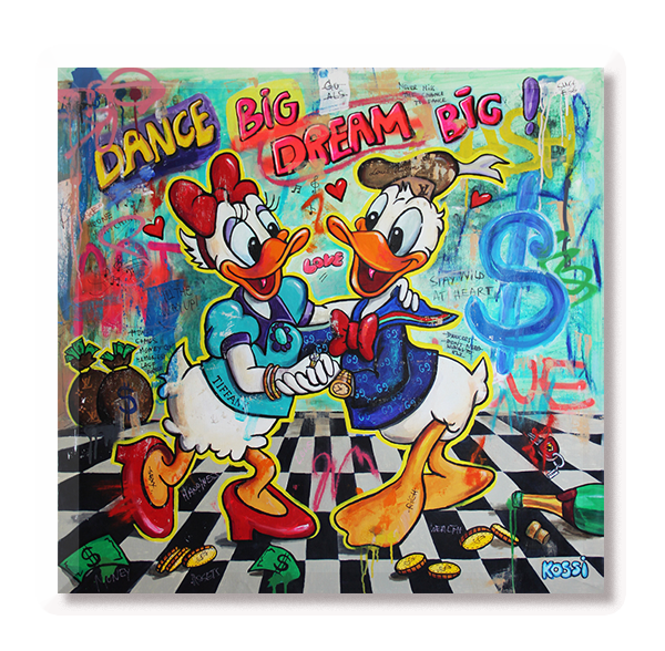 My work lives at the intersection of bold pop culture and personal reflection. Through layered textures, iconic characters, and unexpected juxtapositions, I explore the contradictions of modern life — glamour and grit, success and satire, chaos and clarity. Much of my work reimagines familiar faces — from cartoon legends to luxury icons — not to glorify them, but to question them, twist them, and ultimately make them my own. Characters like Mr. Monopoly, Bugs Bunny, or Homer Simpson become vessels to talk about ambition, abundance, and the absurdity of our times. It’s all pop — but it’s also deeply personal.