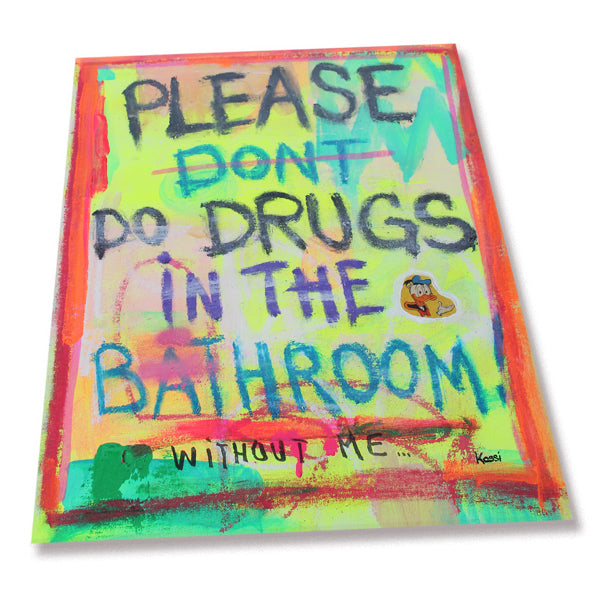 Define your bathroom rules! Have you ever felt like your bathroom needed a pop of humor to keep it classy? This vibrant pop art painting isn't just a decor piece; it's a sassy statement for your bathroom sanctuary. With the cheeky message, "Please Don't Do Drugs in the Bathroom," you're not just decorating; you're declaring your rules with style. This painting will leave guests giggling, and it's the perfect conversation starter. Imagine their surprise when they wander into your bathroom only to be met with this unforgettable piece of art.