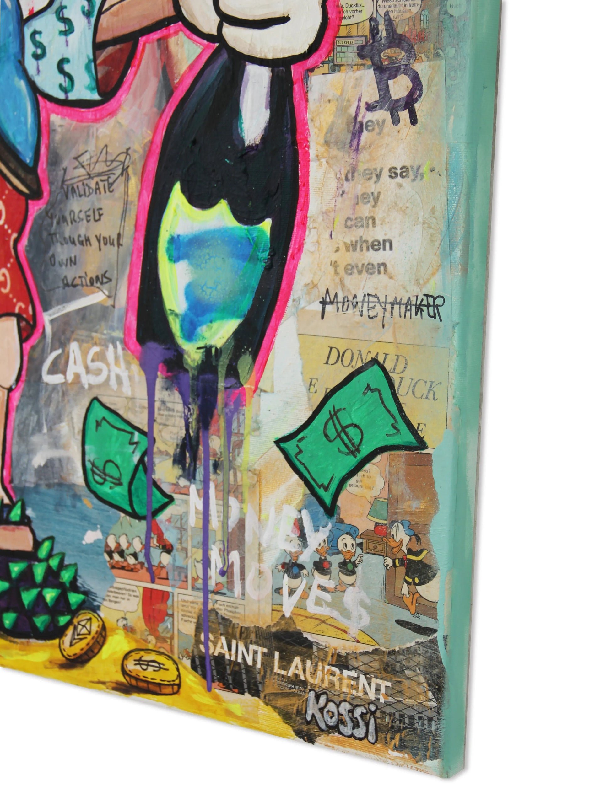 My work lives at the intersection of bold pop culture and personal reflection. Through layered textures, iconic characters, and unexpected juxtapositions, I explore the contradictions of modern life — glamour and grit, success and satire, chaos and clarity. Much of my work reimagines familiar faces — from cartoon legends to luxury icons — not to glorify them, but to question them, twist them, and ultimately make them my own. Characters like Mr. Monopoly, Bugs Bunny, or Homer Simpson become vessels to talk about ambition, abundance, and the absurdity of our times. It’s all pop — but it’s also deeply personal.