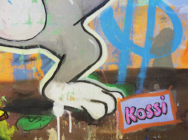 My work lives at the intersection of bold pop culture and personal reflection. Through layered textures, iconic characters, and unexpected juxtapositions, I explore the contradictions of modern life — glamour and grit, success and satire, chaos and clarity. Much of my work reimagines familiar faces — from cartoon legends to luxury icons — not to glorify them, but to question them, twist them, and ultimately make them my own. Characters like Mr. Monopoly, Bugs Bunny, or Homer Simpson become vessels to talk about ambition, abundance, and the absurdity of our times. It’s all pop — but it’s also deeply personal.