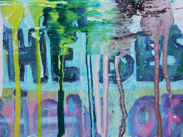 Original artwork by Kristin Kossi 2025. Acrylic, collage, spray paint on stretched canvas. Signed and dated by the artist, artwork comes ready to hang.