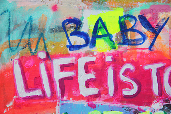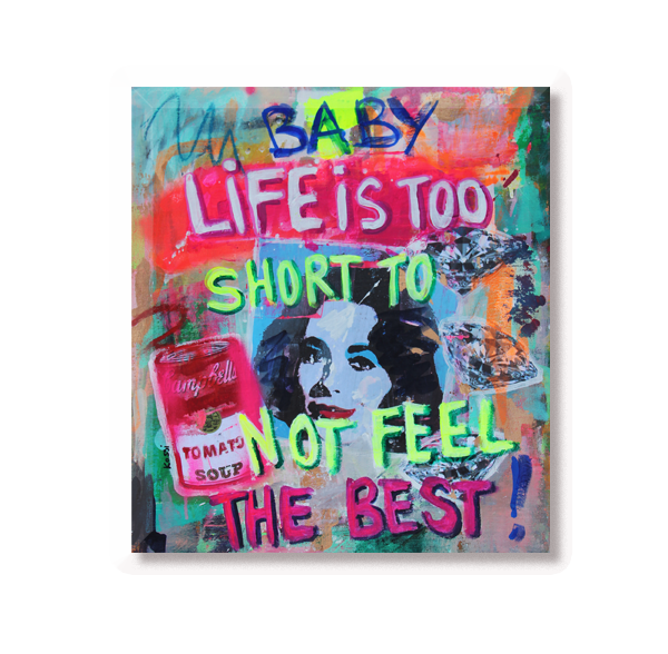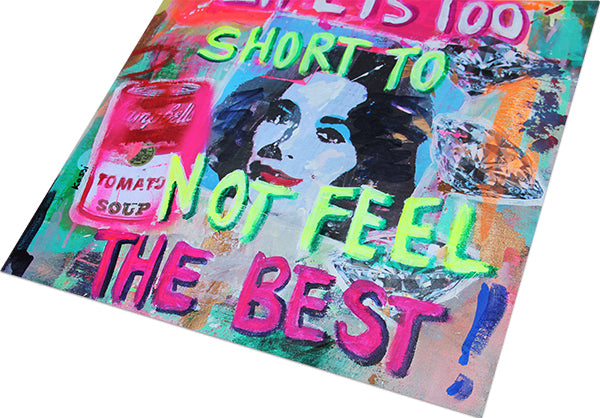 Featuring the uplifting quote "Life is too short to not feel the best," this artwork is a celebration of positivity and self-love.