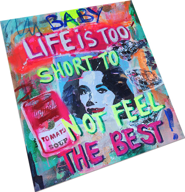 Let the vibrant colors serve as a daily reminder to embrace life, prioritize self-care, and cultivate a mindset that resonates with feeling your absolute best. Life is too short not to surround yourself with the best, and the iconic Liz Taylor in the painting is the perfect embodiment of that philosophy.