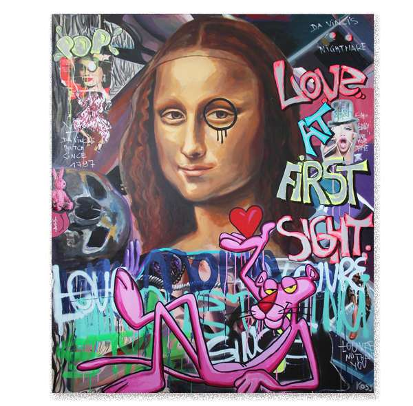 Leonardo da Vinci’s Mona Lisa has captivated viewers for centuries with her enigmatic smile and mysterious gaze. Her face is one of the most recognizable and reproduced in art history, embodying a timeless sense of allure and mystery. In my pop art piece "Love Extraordinaire," I wanted to bring this iconic figure into a contemporary setting, reimagining her in a vibrant, playful light.