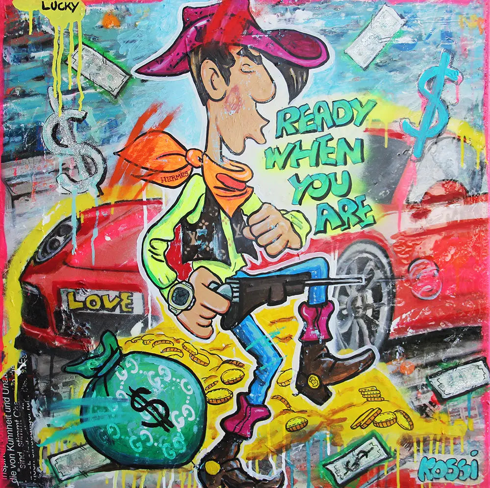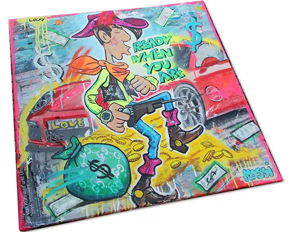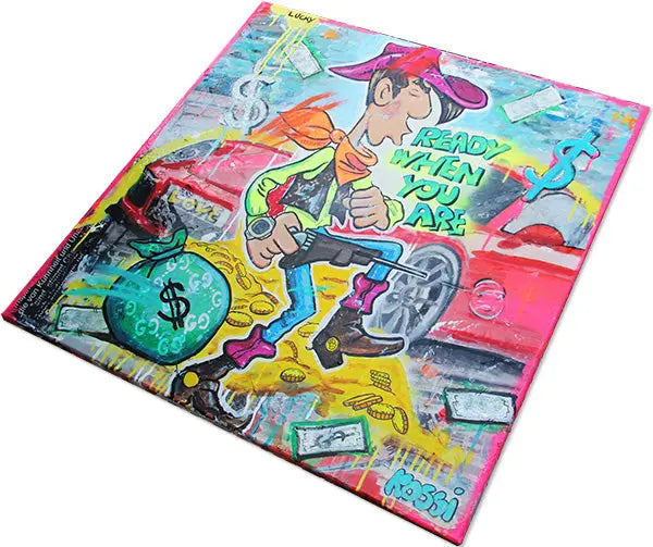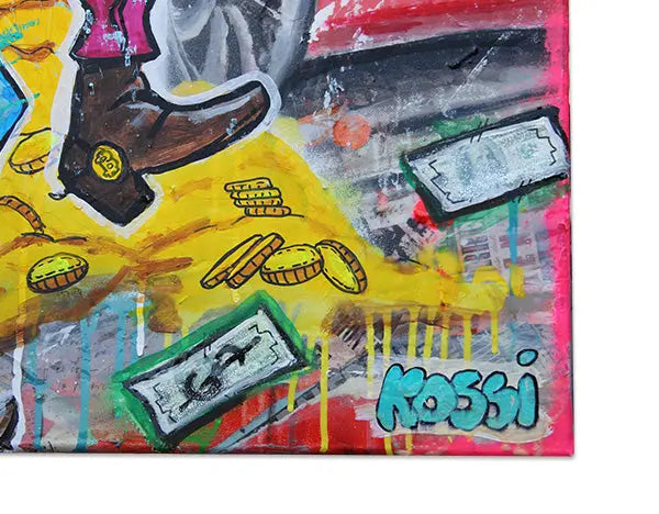 My work lives at the intersection of bold pop culture and personal reflection. Through layered textures, iconic characters, and unexpected juxtapositions, I explore the contradictions of modern life — glamour and grit, success and satire, chaos and clarity. Much of my work reimagines familiar faces — from cartoon legends to luxury icons — not to glorify them, but to question them, twist them, and ultimately make them my own. Characters like Mr. Monopoly, Bugs Bunny, or Homer Simpson become vessels to talk about ambition, abundance, and the absurdity of our times. It’s all pop — but it’s also deeply personal.