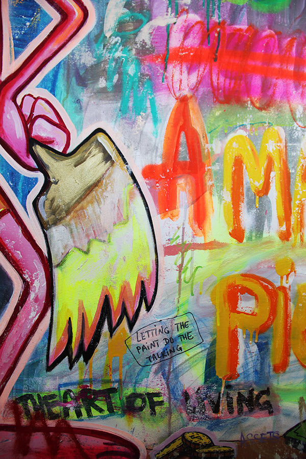 My work lives at the intersection of bold pop culture and personal reflection. Through layered textures, iconic characters, and unexpected juxtapositions, I explore the contradictions of modern life — glamour and grit, success and satire, chaos and clarity. Much of my work reimagines familiar faces — from cartoon legends to luxury icons — not to glorify them, but to question them, twist them, and ultimately make them my own. Characters like Mr. Monopoly, Bugs Bunny, or Homer Simpson become vessels to talk about ambition, abundance, and the absurdity of our times. It’s all pop — but it’s also deeply personal.