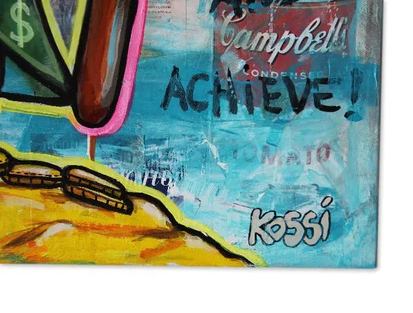 Acrylic, collage, spray paint, aerosol and epoxy on canvas. Glossy finish, signed and dated. Artwork comes ready to hang, certificate of authenticity included. Original artwork by artist Kristin Kossi 2021.