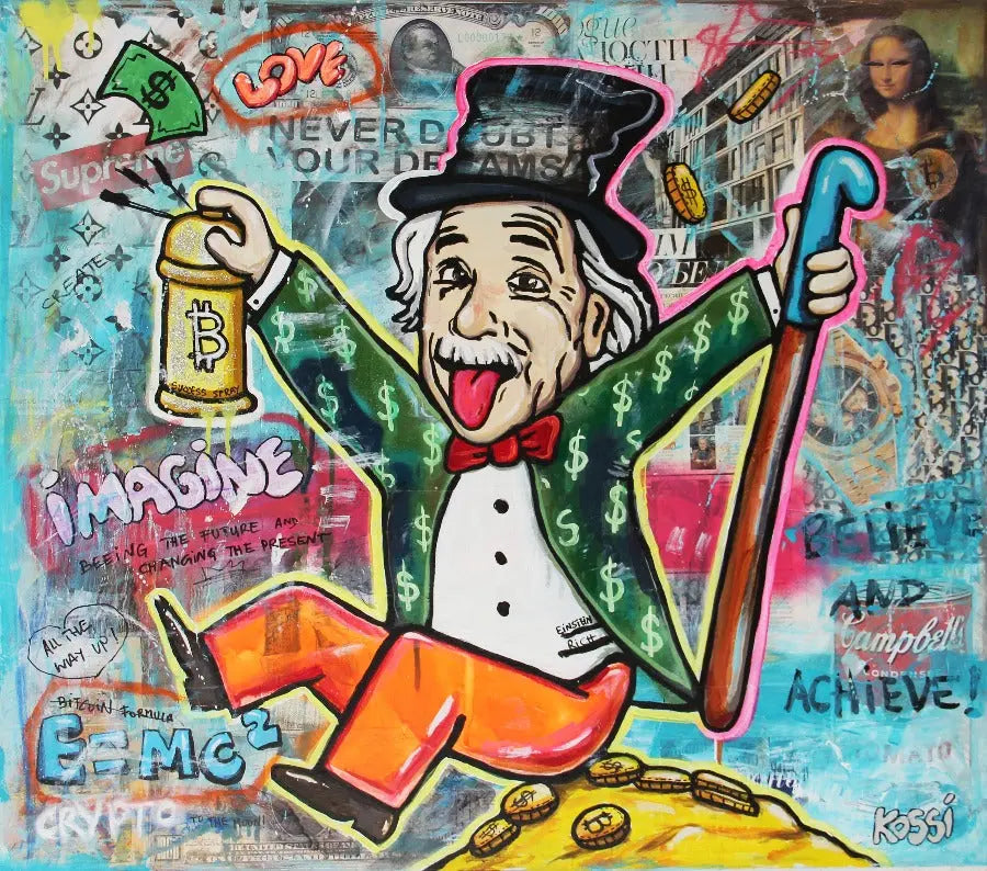 My work lives at the intersection of bold pop culture and personal reflection. Through layered textures, iconic characters, and unexpected juxtapositions, I explore the contradictions of modern life — glamour and grit, success and satire, chaos and clarity. Much of my work reimagines familiar faces — from cartoon legends to luxury icons — not to glorify them, but to question them, twist them, and ultimately make them my own. Characters like Mr. Monopoly, Bugs Bunny, or Homer Simpson become vessels to talk about ambition, abundance, and the absurdity of our times. It’s all pop — but it’s also deeply personal.