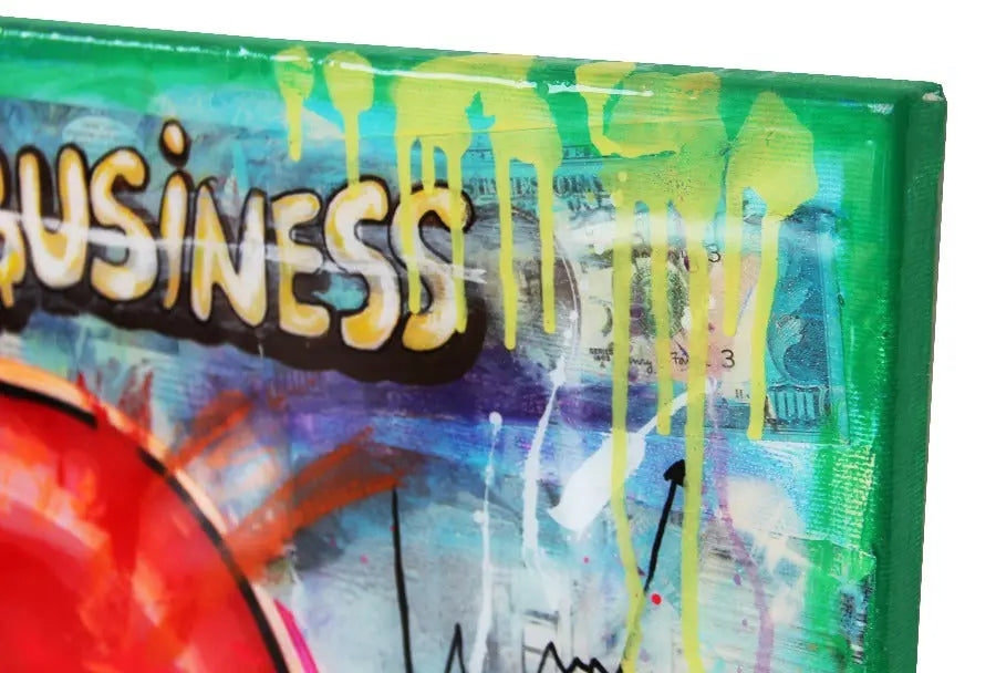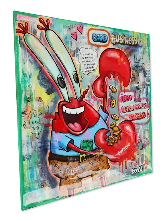 My work lives at the intersection of bold pop culture and personal reflection. Through layered textures, iconic characters, and unexpected juxtapositions, I explore the contradictions of modern life — glamour and grit, success and satire, chaos and clarity. Much of my work reimagines familiar faces — from cartoon legends to luxury icons — not to glorify them, but to question them, twist them, and ultimately make them my own. Characters like Mr. Monopoly, Bugs Bunny, or Homer Simpson become vessels to talk about ambition, abundance, and the absurdity of our times. It’s all pop — but it’s also deeply personal.