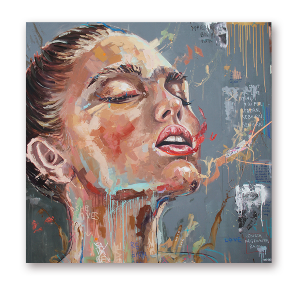 Step into a world of emotional depth and raw expression with Reborn — a powerful large-scale contemporary portrait by Kristin Kossi.