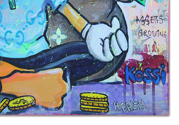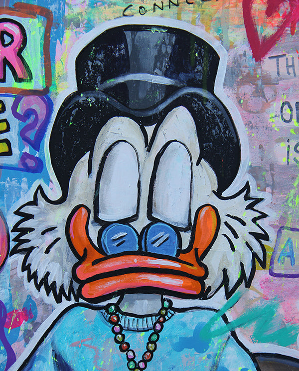 My work lives at the intersection of bold pop culture and personal reflection. Through layered textures, iconic characters, and unexpected juxtapositions, I explore the contradictions of modern life — glamour and grit, success and satire, chaos and clarity. Much of my work reimagines familiar faces — from cartoon legends to luxury icons — not to glorify them, but to question them, twist them, and ultimately make them my own. Characters like Mr. Monopoly, Bugs Bunny, or Homer Simpson become vessels to talk about ambition, abundance, and the absurdity of our times. It’s all pop — but it’s also deeply personal.