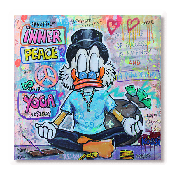Scrooge McDuck, typically associated with relentless pursuit of wealth, is now on a quest for inner riches and peace of mind. The juxtaposition of his character in a serene yoga posture challenges preconceived notions, inviting viewers to contemplate the balance between material success and spiritual well-being.