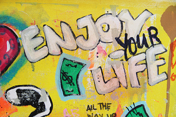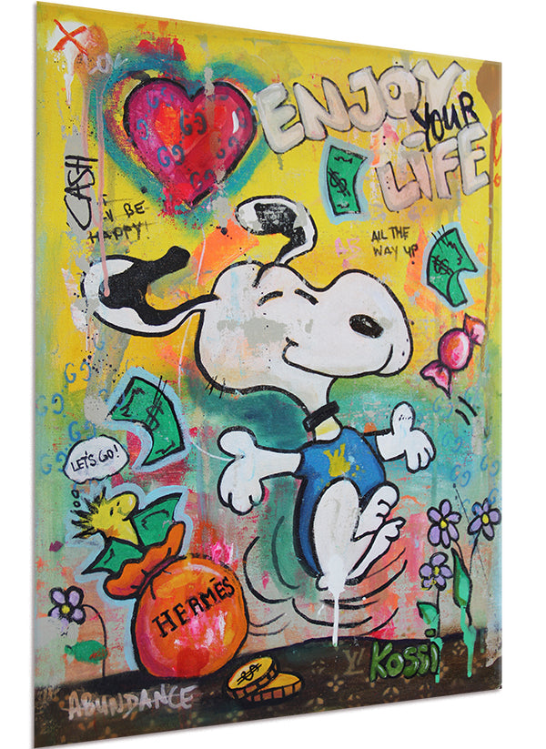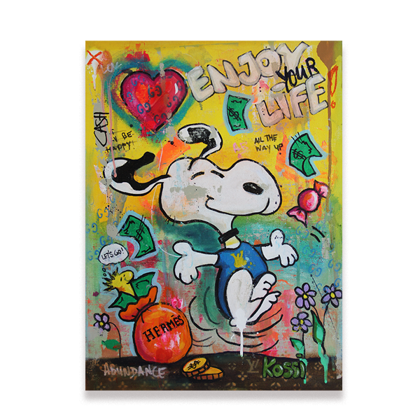 My work lives at the intersection of bold pop culture and personal reflection. Through layered textures, iconic characters, and unexpected juxtapositions, I explore the contradictions of modern life — glamour and grit, success and satire, chaos and clarity. Much of my work reimagines familiar faces — from cartoon legends to luxury icons — not to glorify them, but to question them, twist them, and ultimately make them my own. Characters like Mr. Monopoly, Bugs Bunny, or Homer Simpson become vessels to talk about ambition, abundance, and the absurdity of our times. It’s all pop — but it’s also deeply personal.