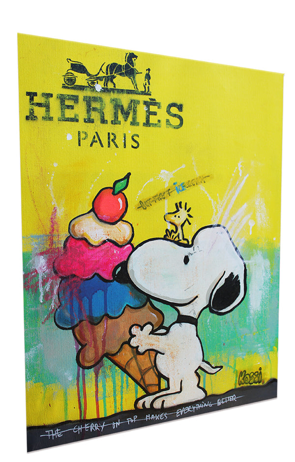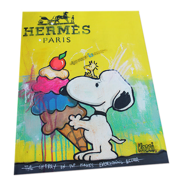 If you are a fan of Snoopy, then you will absolutely love our Snoopy Melting Ice Cream artwork! This piece brings a touch of whimsy and fun to any space, combining the beloved character with a playful twist on melting ice cream.