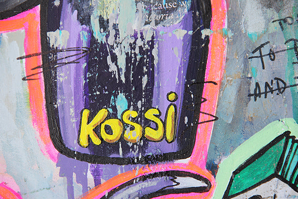 Original artwork by Kristin Kossi 2025. Acrylic, collage, spray paint on stretched canvas. Signed and dated by the artist, artwork comes ready to hang.