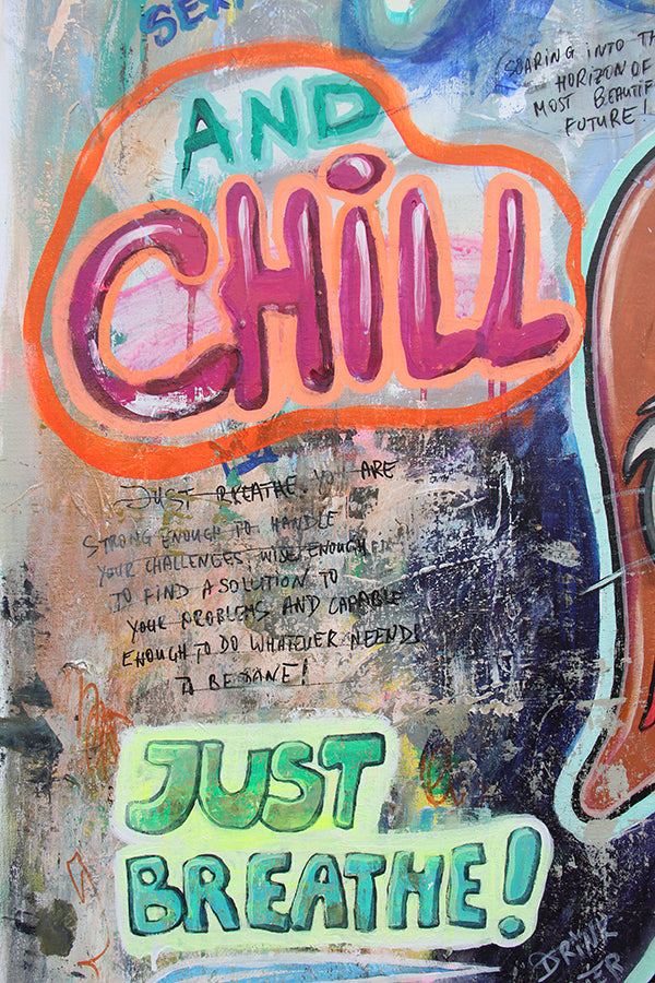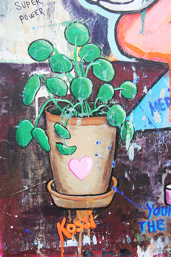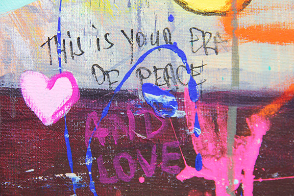 Original hand painted artwork by artist Kristin Kossi, 2024. Acrylic, aerosol, oil stick on canvas. Signed and dated, unframed, shipped rolled, certificate of authenticity included.